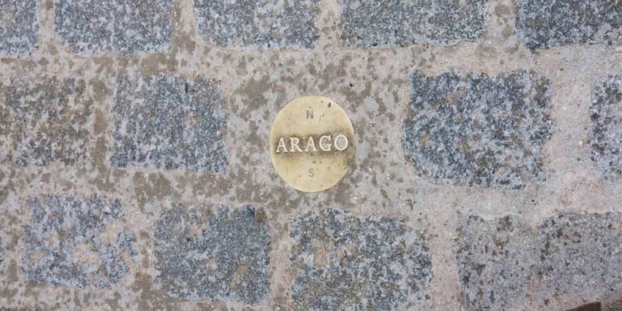 Many years ago, on one of my trips to Paris, I visited the Jardins des Luxembourg when I stumbled upon a little brass plate set in the ground with the word “ARAGO” engraved in it. The next day, at the Louvre Pyramid, I found a second one. This intrigued me so when I got back home I started to look into it.