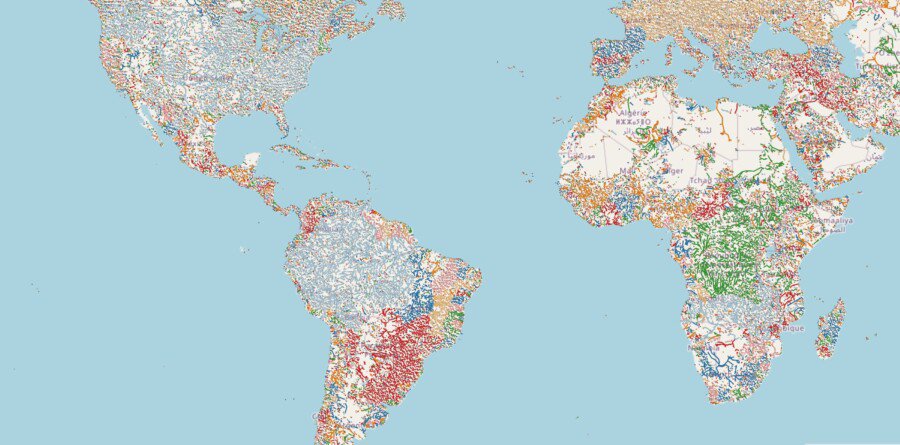 Check out an interactive map that maps the global network of waterways and shipping routes over on waterwaymap.org. All data is coming from OpenStreetMap.